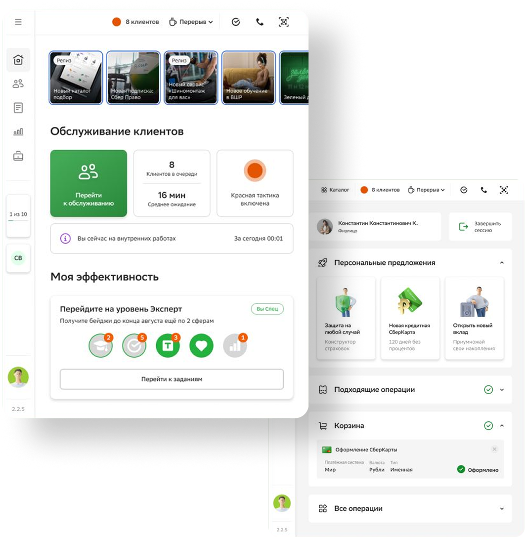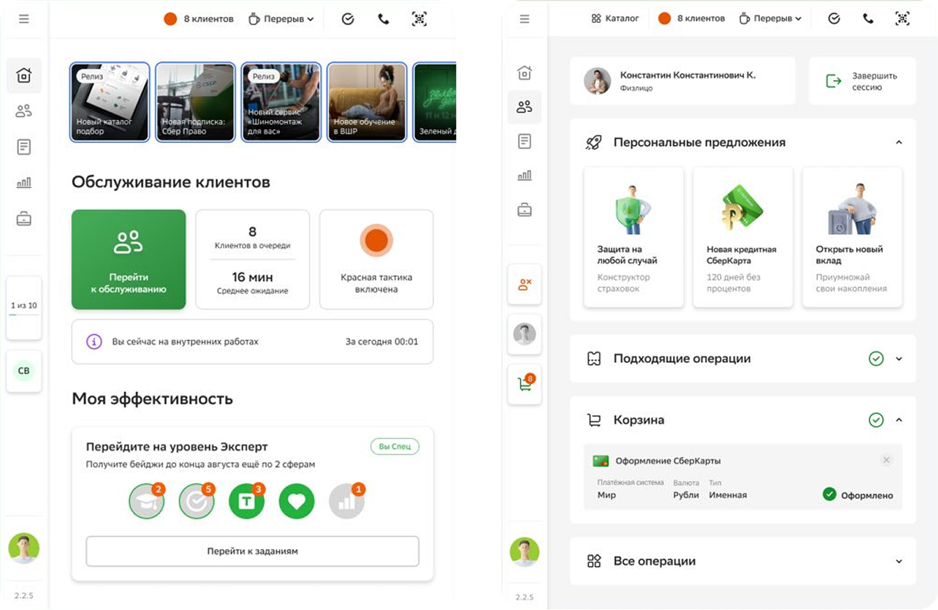 Product Designer on a large-scale internal product for Sber, the largest bank in Russia. Designed a work tool for branch employees on iPad and PC, used for in-branch customer service. The product has over 50,000 DAU, with a planned rollout to 100,000+ users nationwide. Worked as part of the CX team across 150+ cross-functional teams.